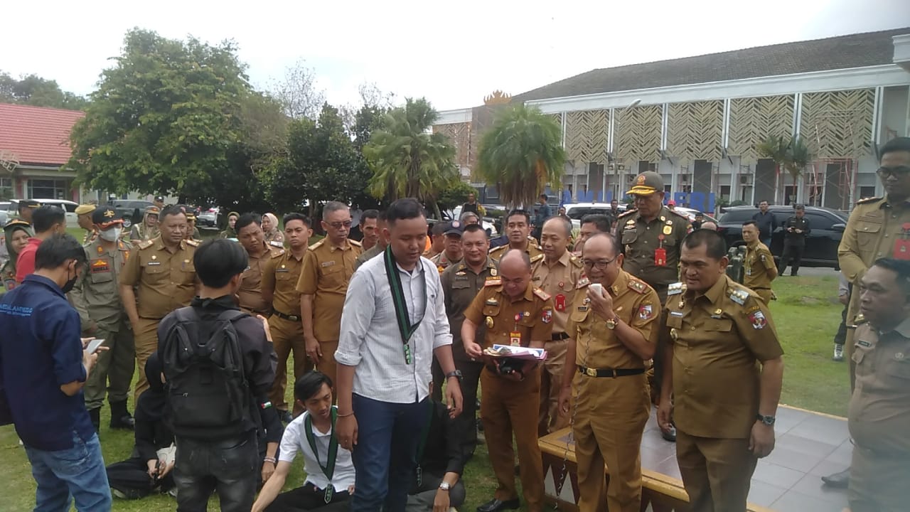 Dalam orasinya, koordinator aksi demonstrasi, Bayu Iswari menyampaikan sejumlah tuntutan. Pelbagai tuntutan itu di antaranya, pertama, mengenai transparansi ke luar-masuknya dana Corporate Social Responsibility atau CSR (dana tanggung jawab sosial perusahaan). Salah satu penggunaan dana CSR yang paling disorot adalah pembangunan gerbang Rumah Sakit Umum Daerah H.M.Ryacudu.