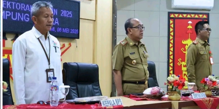 Lampung Utara-Sekretaris Daerah Kabupaten Lampung Utara, Drs. H. Lekok, M.M., memimpin Rapat Pembinaan Statistik Sektoral Tahun 2025 yang digelar di Aula Tapis Setdakab, Senin (6/5/2025).