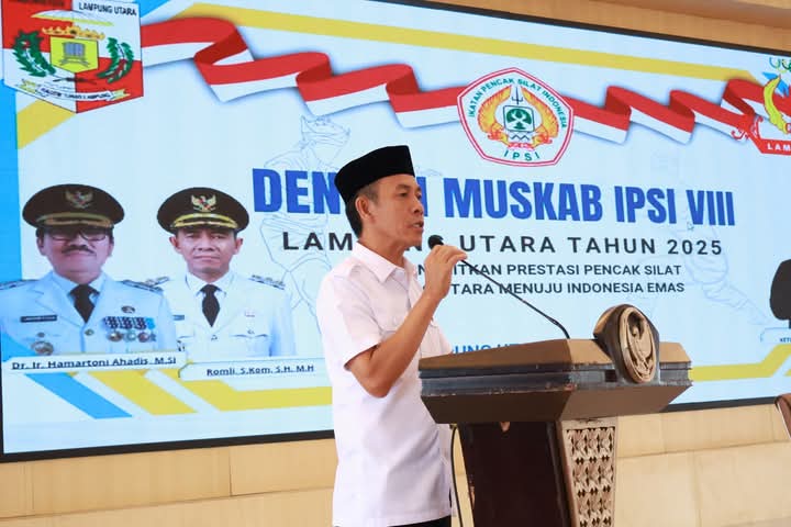 Kotabumi,BN — Wakil Bupati Lampung Utara, Romli, S.Kom., S.H., M.H., membuka secara resmi Musyawarah Kabupaten (Muskab) ke-VIII Ikatan Pencak Silat Indonesia (IPSI) Kabupaten Lampung Utara masa bhakti 2025–2029 yang digelar di Gedung Pusiban Agung Kotabumi, Sabtu (17/5/2025).